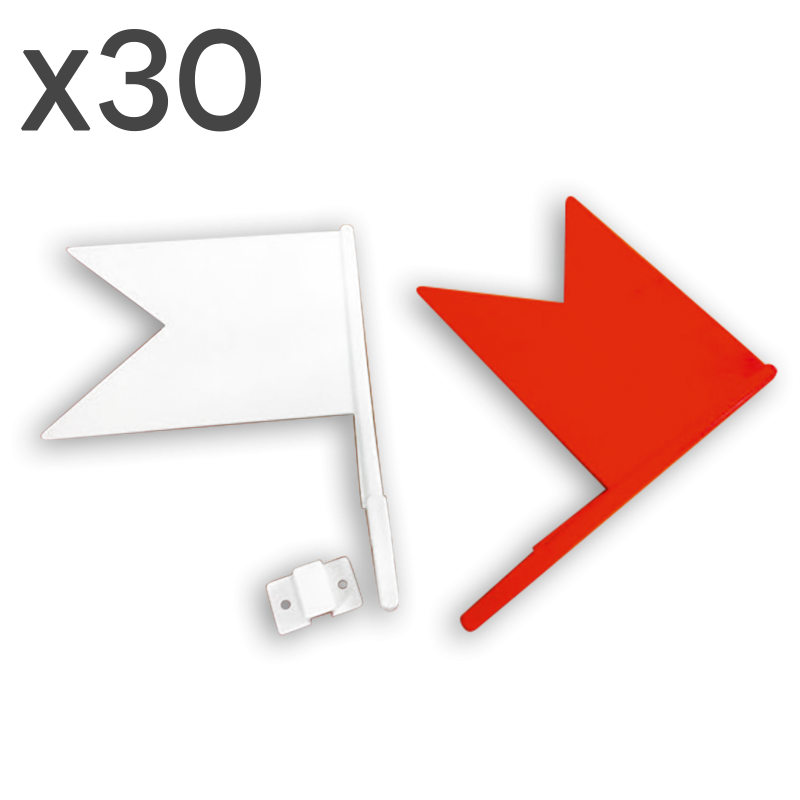 Lot de 30 fanions avec attaches, composé de 15 rouges et 15 blancs