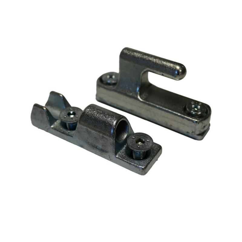 Charnière en fonte fournie avec plaque, à insérer. Lorsque le côté est ouvert à 90°, il peut être facilement retiré de la charnière. Si le côté est ouvert à un angle supérieur ou inférieur à 90°, la goupille de la charnière reste sécurisée dans son logement pour éviter toute chute.
