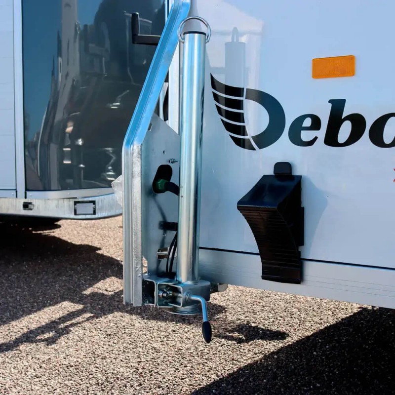 Béquille à bride universelle pour fourgons, permettant de stabiliser votre remorque sur tout type de sol.
