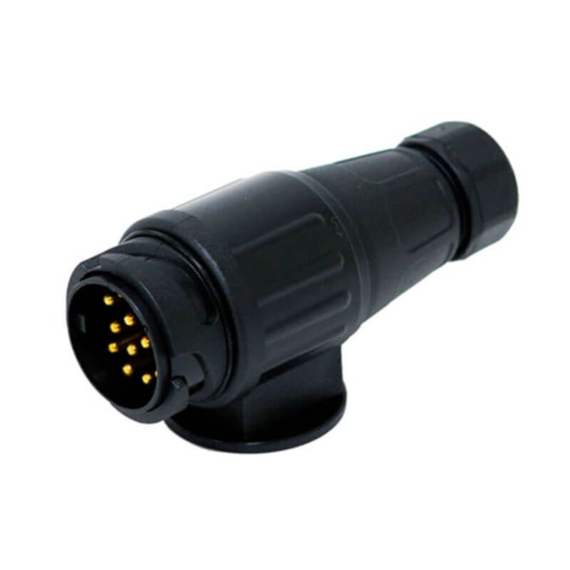 Prise 13 broches standard, idéale pour le raccordement électrique des vans et remorques. Assure une connexion fiable pour l’éclairage, les feux de recul et les équipements auxiliaires.